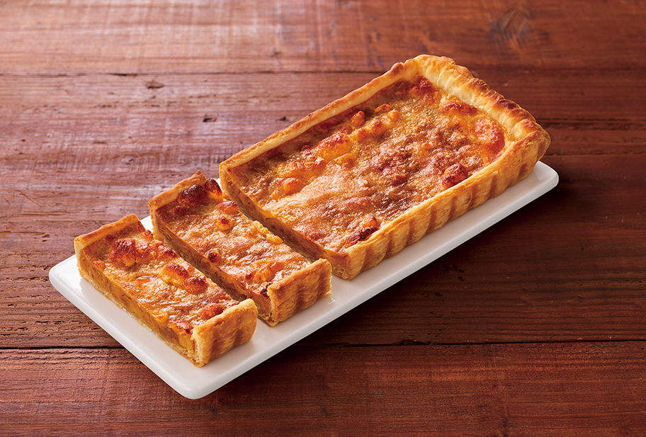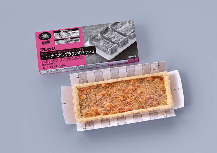 2025.09.29 F)オニオングラタンのキッシュ290g箱 2025秋・KOEI季節のオススメ② カットするだけで本格キッシュ、オニオングラタンの旨みを詰め込んだ、リッチな味わいです。 オニオンとチーズを贅沢に使用。サクサクの自家製パイ生地が魅力の商品です。