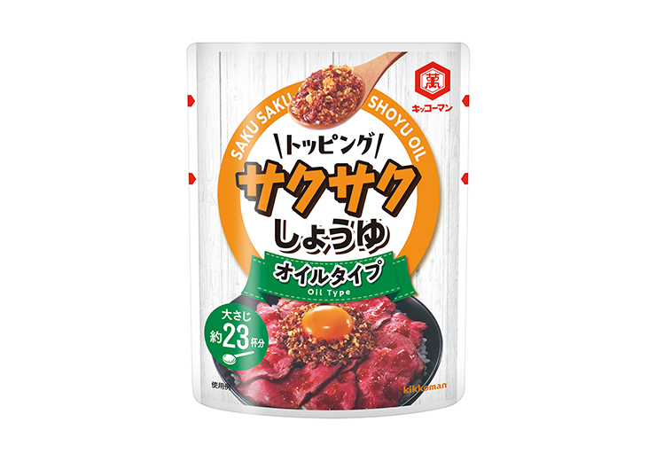 2025.10.27 サクサクしょうゆオイルタイプ350g袋 2025冬・KOEI季節のオススメ① サクサク感×香ばししょうゆで止まらない美味しさ!新感覚の食べるしょうゆオイルです。 しょうゆのうまみをフリーズドライすることでぎゅっ!と凝縮し、香ばし具材使用(ガーリック・オニオン・いりごま)を加えたサクサク食感のトッピングタイプ調味料です。卵かけご飯や白いご飯にのせたり、ドレッシングの代わりとしてサラダやゆで野菜にかけたりするだけで、豊かな風味と濃厚な味わいが広がります。
