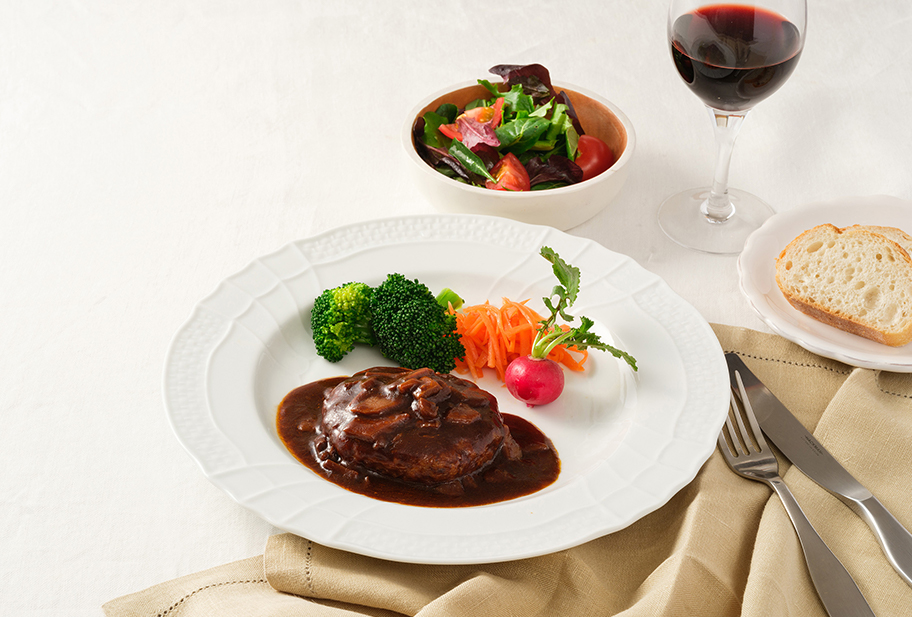 2025.12.01 20228デミソースDEハンバーグ【165g×20】 MCC食品 25.12 きのこの旨みたっぷり。手間なく一品完成!深みのあるデミソースが食欲を引き立てます。 オーブンで焼き上げたハンバーグに、マッシュルーム、エリンギ、ローストオニオン等を加えて仕上げた、デミグラスソース仕立てのハンバーグです。