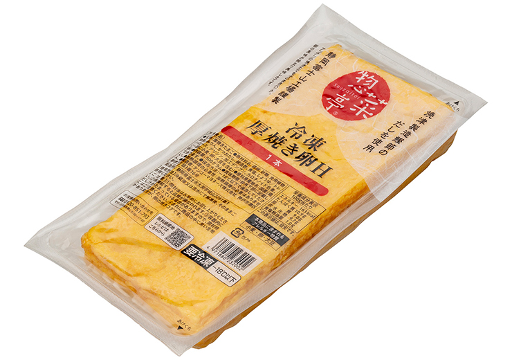 2026.01.05 12677:ケンコー惣菜亭冷凍厚焼き卵H1本500g 2026年1月 節分特集 だしの香りが広がる、やさしい甘みの厚焼き卵。 程良い甘味とだしの旨味が口の中で広がる厚焼き卵です。冷凍タイプですので欲しい時に解凍し、手軽にご活用いただけます。味の決め手となるだしの産地にこだわり、静岡県焼津製造鰹節のだしを使用しました。保存性に優れていますので、お弁当やお総菜に最適です。