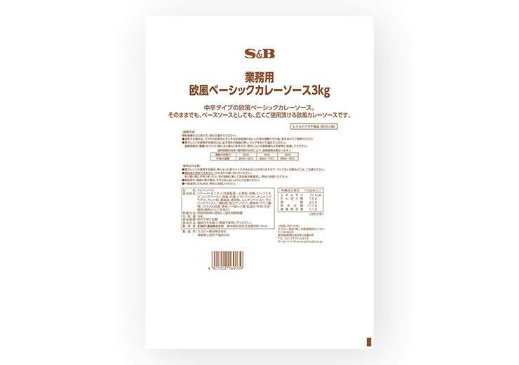 2026.01.22 1412SB欧風ベーシックカレーソース3㎏袋 SB食品 26.2 アレンジ自在、店の味をつくる欧風カレー。 中辛タイプの欧風ベーシックカレーソース。そのままでも、ベースソースとしても、広くご使用頂ける欧風カレーソースです。