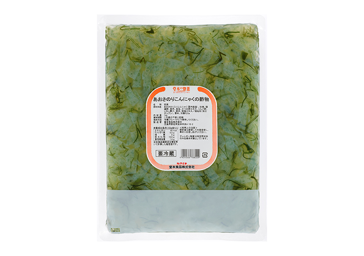 2026.02.03 1836堂本食品あおさのりこんにゃくの酢物1㎏袋 2026年2月新規取り扱い商品 彩り豊かでさっぱり!あおさの香りと昆布の食感が抜群の商品です。 あおさのりを練り込んだこんにゃくに細切り昆布を組み合わせた「緑」が映える惣菜です。まろやかな酸味の酢物でのどごしが良く、さっぱりとした後味に仕上げました。